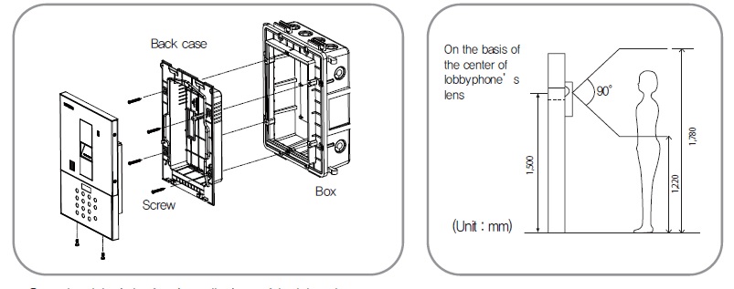 En caso de que la altura de instalación de lobbyphone esté fuera del rango, es difícil obtener una imagen adecuada, así que tenga cuidado con la altura de instalación del lobbyphone.